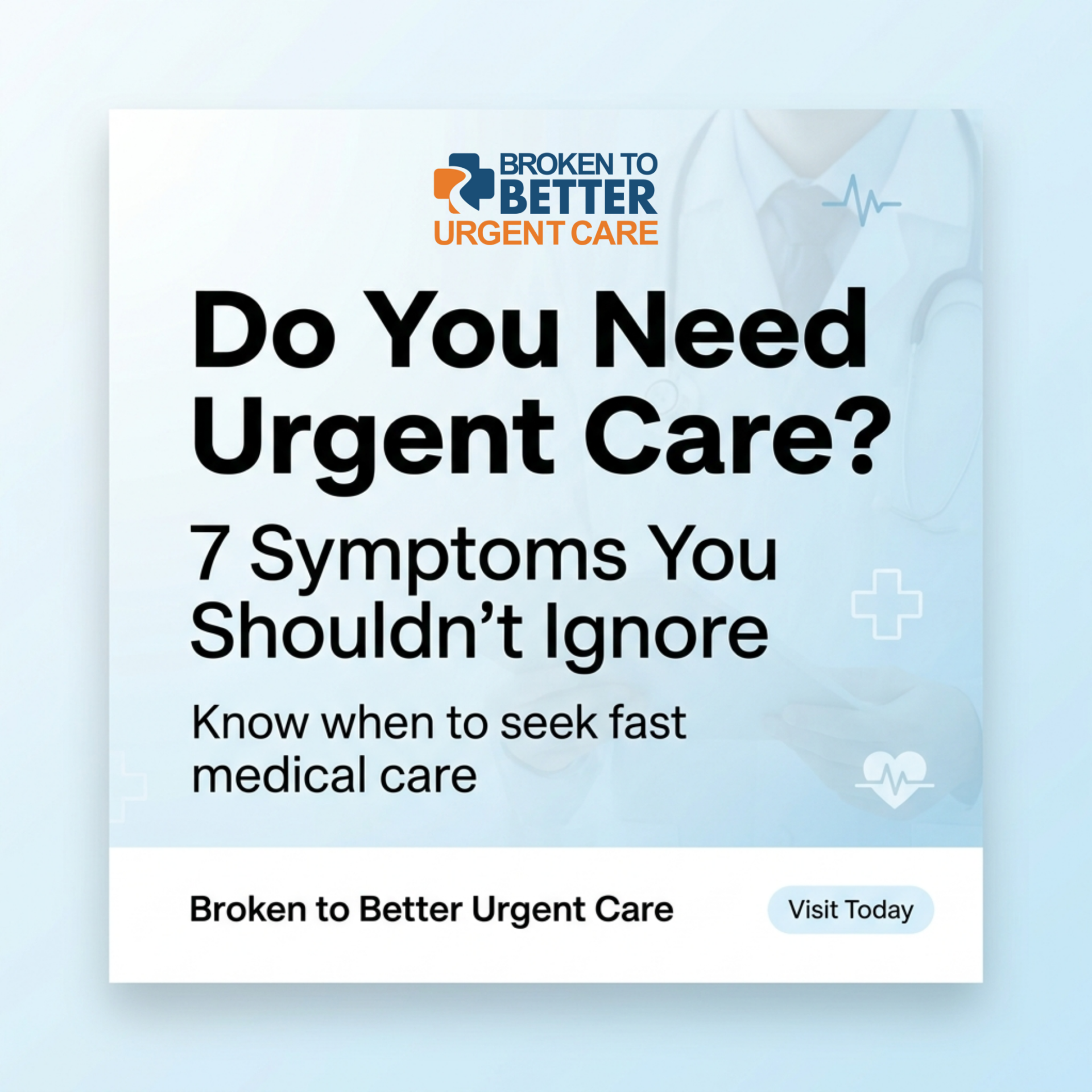 Knowing when to visit urgent care can help you get the treatment you need—faster and without unnecessary stress. At Broken to Better Urgent Care, we provide fast, reliable care for a wide range of non-emergency medical concerns.